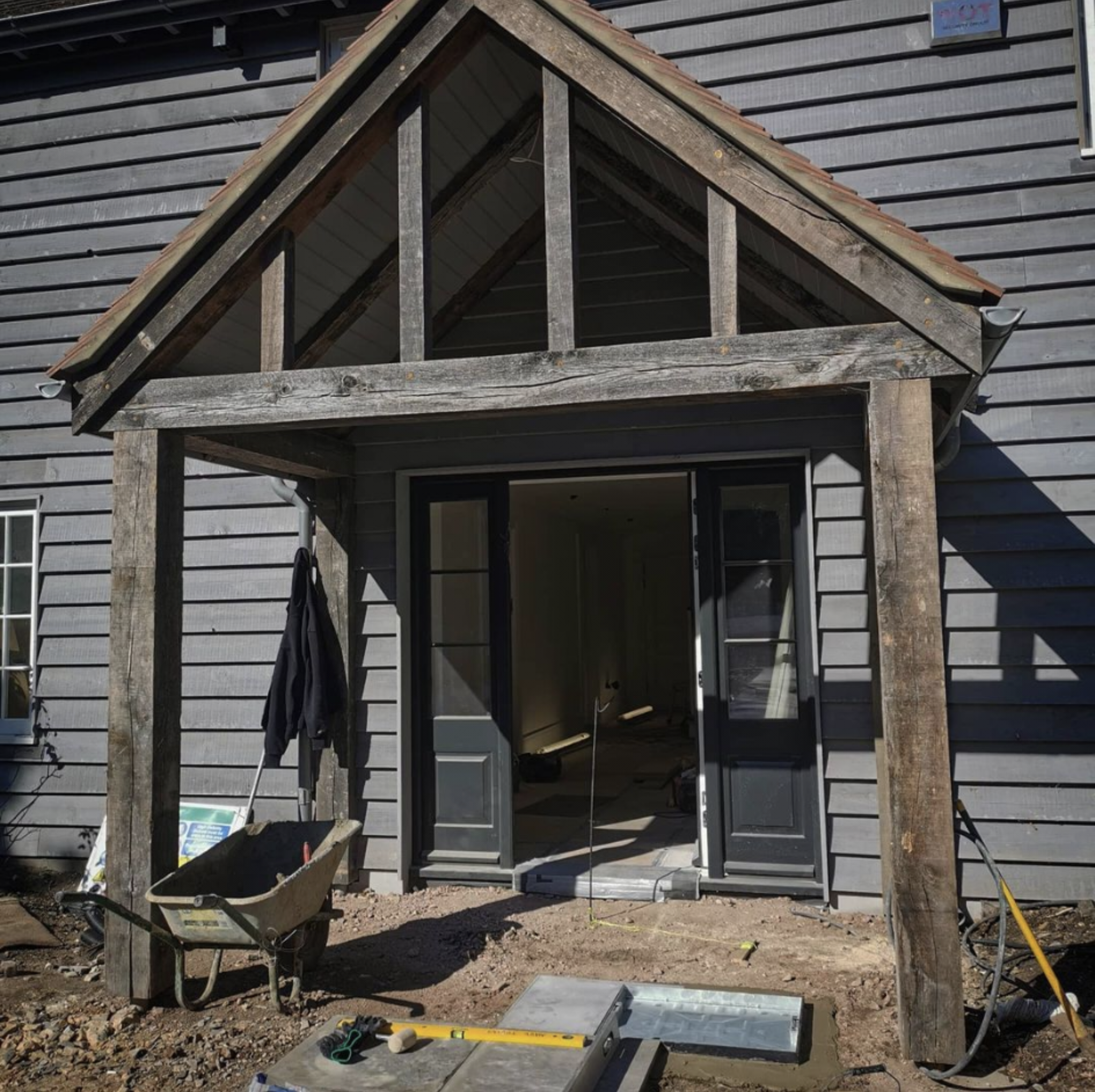 We were asked to make this porch from older oak to keep the grey look of the new build.